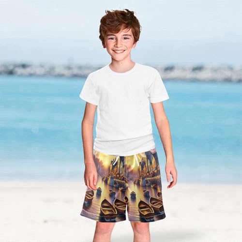 Ships Sunset Orange Boys Swim Trunks Quick Dry Toddler Swimsuit Boy Swimwear Board Shorts Bathing Suits 4T 5