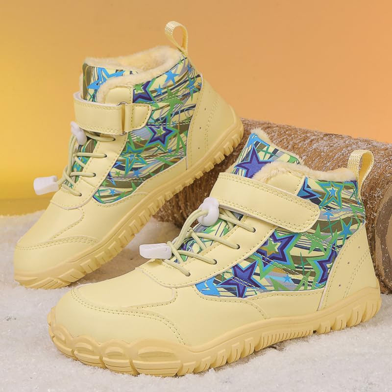 Winter Children Barefoot Snow Boots High-Top Shoes Anti Slip Plush Trail Running Shoes for Hiking Climbing Outdoor Boots (622-huang, Toddler, 1, Digital, US Shoe System, Wide Leg Pants) 6