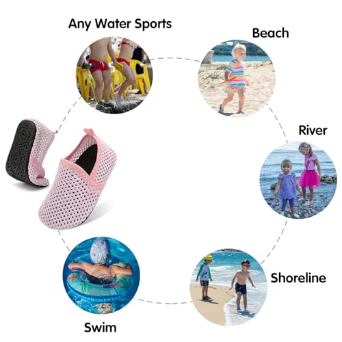 • Convenience On/Off:these toddler swim shoes with the design of slip on,higher shoe's collar,make it convenient to wear and take off,the lining is made of skin-friend and mesh