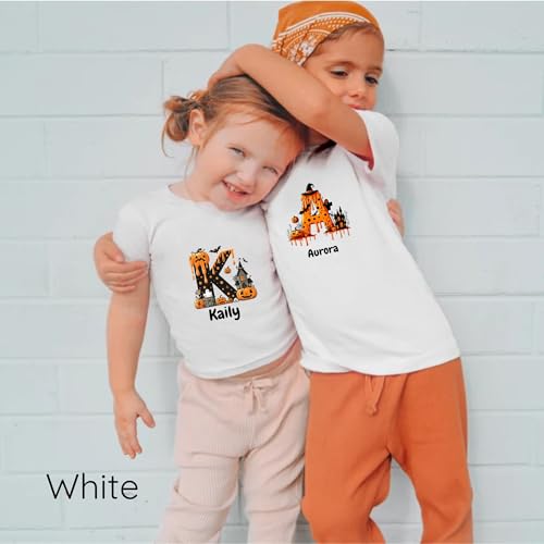 Personalized Halloween Kids Shirt - Custom Name Letter T-Shirt, Pumpkin and Haunted House Design, Halloween Gifts for Children 5