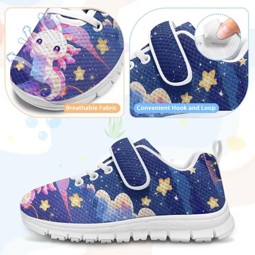 HOT ! Boys Girls Sneakers Kids Lightweight Breathable Strap Athletic Running Shoes for Little Kid/Big Kid Axolot Star Cloud Sky Pattern(White Sole)