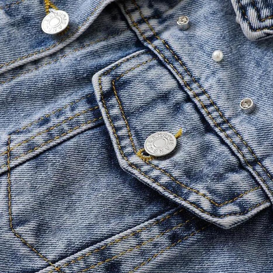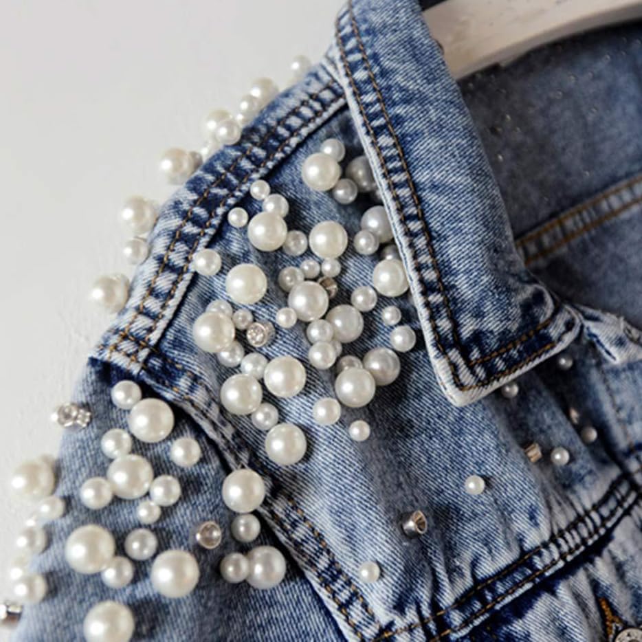 • Material:The rhinestone jacket are made from denim and decorated with faux pearls for a chic look.Besides,it provides comfort and flexibility.