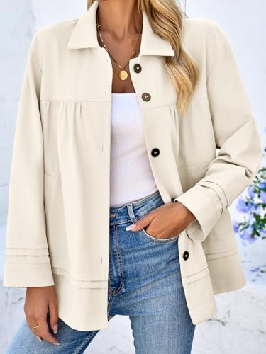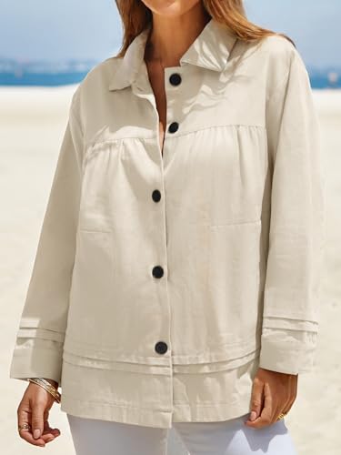 Cicy Bell Womens Oversized Casual Jackets Lightweight Pleated Babydoll Shackets Cotton Button Down Coats 5