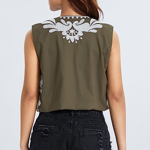 Embroidered Vest Tops for Women Boho Vintage Open Front Sleeveless Cardigan Y2k Cropped Waistcoat Outerwear Gilet 3