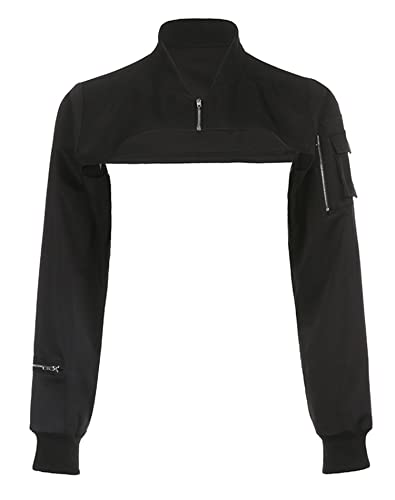 Lucrosun Women's Cutout Cropped Bomber Jacket Long Sleeve Shrug Tops Streetwear 5