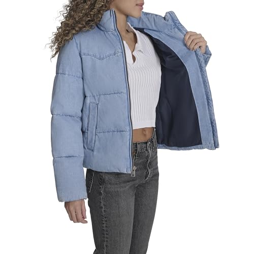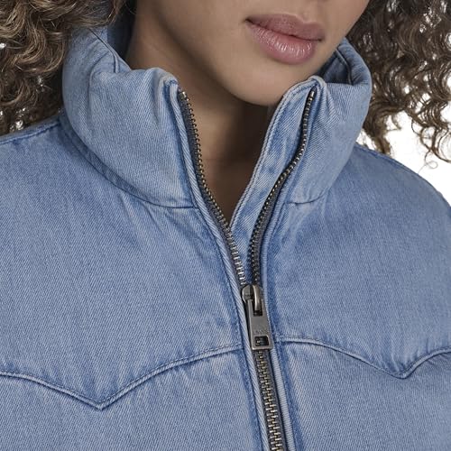 • Classic denim fabric meets puffer styling for a bold, modern look
