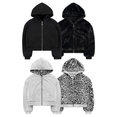 • 【Design】This Zip-up Hoodie Y2k features a reversible design, with one side solid and the other featuring a vintage leopard print. The zipper closure allows for easy dressing, and the spacious hood and front pockets combine practicality with style