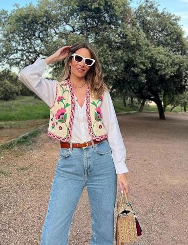 • Features: embroidered vest features with a sleeveless, open front. The best feature of the floral embroidered vest women is the floral design which is full of fashion. boho vest for women is very versatile.