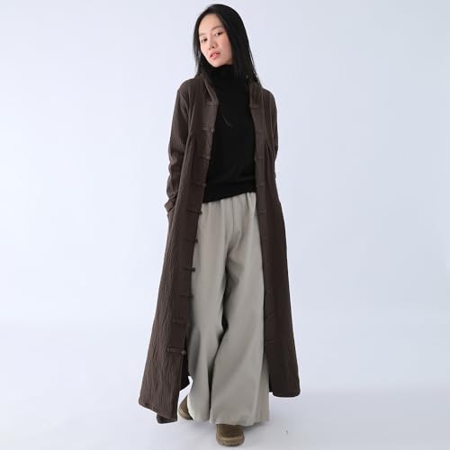 More information about Women's Hooded Robe Coat Cotton Linen Blend Long Jacket Outerwear with Button Closure & Pocket