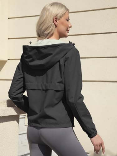 Womens Waterproof Reversible Rain Jacket Lightweight Raincoat Packable Hooded Outdoor Windbreaker Jacket 5