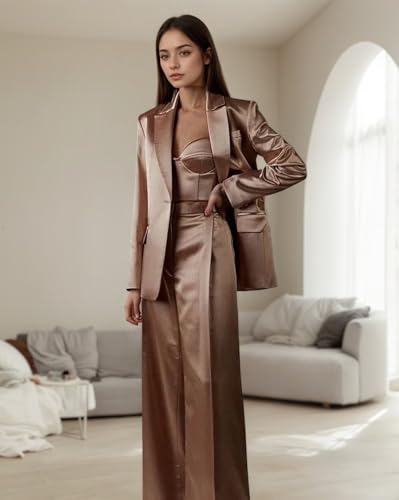 Satin Womens Tuxedo Suit Set 3 Piece 1 Button Pant Suits for Women Casual Notch Lapel Blazer Vest Pants 3