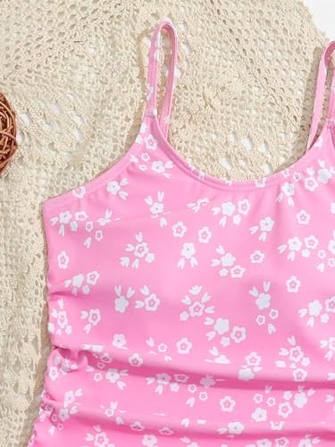 Milumia Girl's Ditsy Floral One Piece Swimsuit Ruched Spaghetti Strap Bathing Suit with Coverup Skirt 5