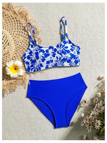 OYOANGLE Girl's Two Piece Swimsuit Boho Floral Print Scoop Neck Bikini Bathing Suits Sports Beachwear 1