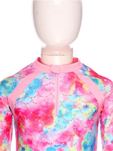 UPF 50+ Rashguard Shirts for Girls Printed Long Sleeve Zip Neck Swim Tank Top 4