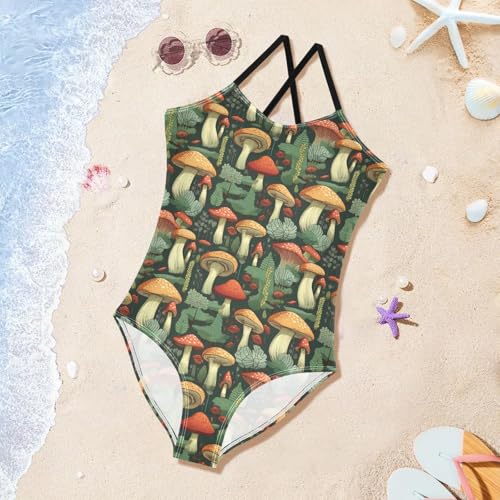 ALAZA Mushrooms Green Leaves Girl’s Swimsuits Bathing Suit One Piece Beach Swimwear 6