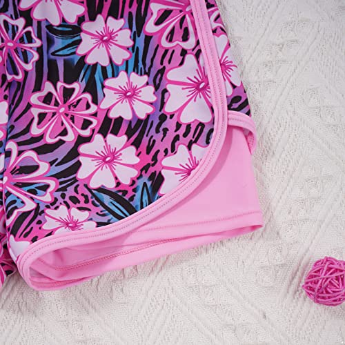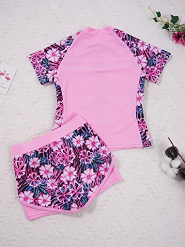 Girls Two Piece Swimsuit Rash Guard Set Short Sleeve Front Zipper Bathing Suit with Sun Protection 6
