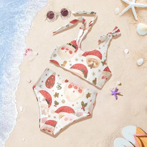 KLL Christmas Head Santa Pattern Girls Two Piece Bikini Set Beach Swimsuit Swimming Suits Cute Shoulder Strap 1