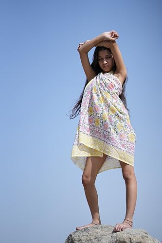 • Golden Jari Work Sarongs Cotton Sarong, Floral Print Scarf, Beach Cover Up, Summer Pareo, Womens Cover Up