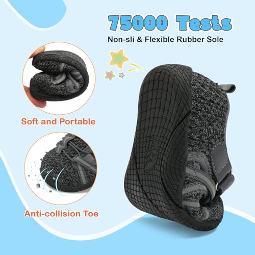 • Breathable Knit Upper: The upper of these toddler shoes is made of a high-stretch knit fabric, breathable and quiky dry, ensures your child‘s feet to move freely and keep dry. Suitable for all seasons