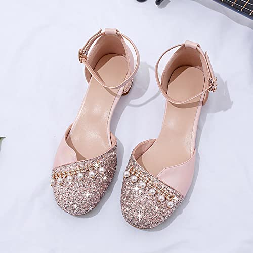 Betadog Girls Sandals Kids Glitter Bow Dress Shoes Heel Sequins Princess Sandals Toddler Flower Wedding Party Shoes (Pink-d, 3.5) 5