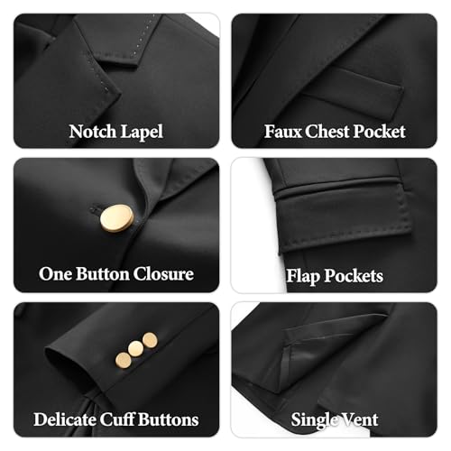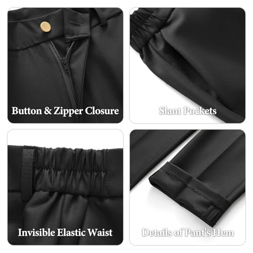 • 【Stylish Design】The blazer jacket features elegant gold buttons, notch lapel, two flap pockets and a faux chest pocket. Paired with the straight leg trousers equipped with two slant pockets and an elastic waistband, this women's pants suit combines functionality with fashion for dressy casual occasions.