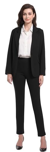 • Features: Pant suits for Women set. Slim fit Blazer:Basic lapel collar blazer jacket for women, a single front button design, two functional flap pockets, perfectly carrying some necessity.Business casual pants for women with slim fit Silhouette, elastic Waistband pull on style, ensures the comfort of wearing.Two side pockets for dress pants with belt loops easy to create a fashionable look.