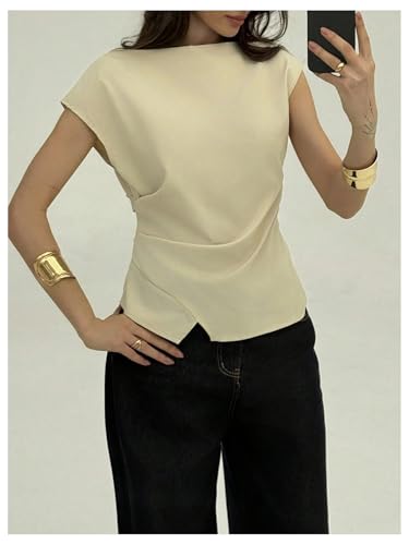 • Elegant blouse for women features a unique asymmetrical-neckline design that adds an element of modern chic to its style, with a fitted silhouette that accentuates the wearer's figure
