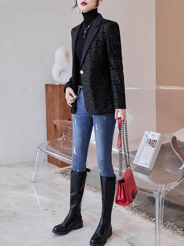 HOT ! Blazers for Women Business Casual Petite Office Long Sleeve Shiny Sequins Suit Jacket for Holiday Party JNZJK001