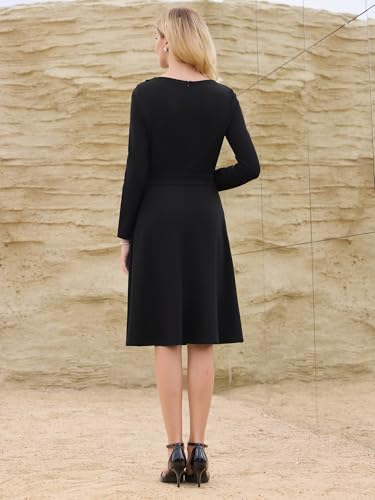 Women's A Line Work Dress Long Sleeve Asymmetrical Neckline Office Flare Dresses 4