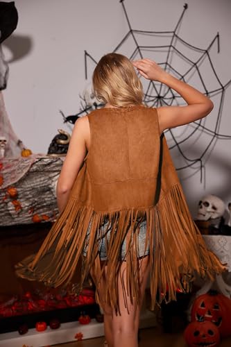 HOTOUCH Fringe Tops for Women Western Shirts Hippie Vest 70s Disco Cowboy Outfit Cowgirl Top Long Vest Jacket Faux Leather Cowgirl Shirts Brown S 5
