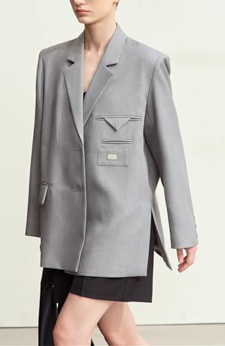 More information about Women Lapel Collar Asymmetrical Wide Shoulder Fashion Loose Fit Blazer Office Lady Long Sleeve Single Breasted Jacket Coat