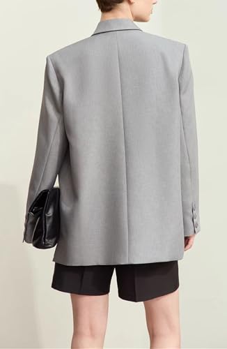 Women Lapel Collar Asymmetrical Wide Shoulder Fashion Loose Fit Blazer Office Lady Long Sleeve Single Breasted Jacket Coat 5
