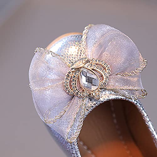 EnJoCho Running Shoes for Toddler Summer And Autumn Fashion Girls Casual Shoes Solid Color Mesh Bow (Silver, 4.5-5 Years) 5