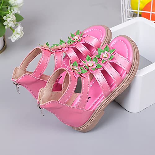 HOT ! Summer Girls High Top Sandals Kids 𝐆ladiator Lace Up Sandals Zipper Flowers Cute Princess Shoes Non-Slip Sandals (Hot Pink, 31 Little Child)