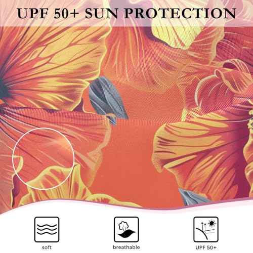 ALAZA Orange Red Hibiscus Flower Blossom Girls One Piece Swimsuit Long Sleeve Rash Guard Swimsuits UV 50+ Swimwear Zipper 7