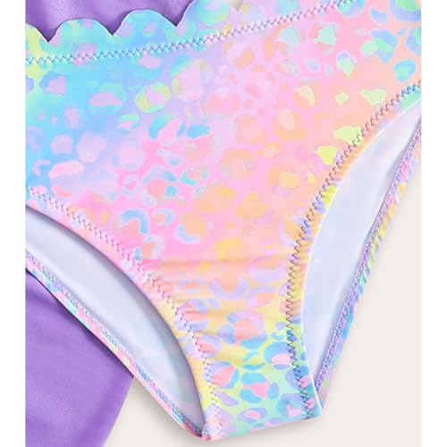 Kids Girls 3 Pcs Swim Cover Up Sets Shiny Mermaid Scales Bikini Crop with Brief Wrap Skirts 6
