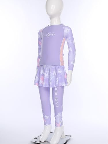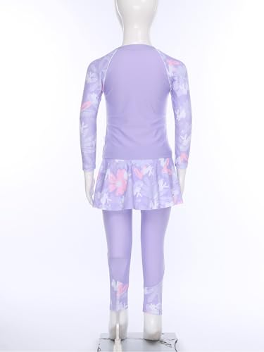 Kids Girls UPF 50+ Swim Shirts with Skirts Leggings Athletic 2 Pieces Rash Guard Sets 3