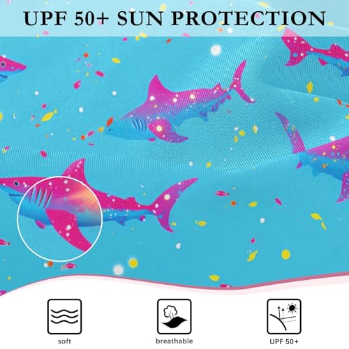 ALAZA Fish Shark Blue Girls One Piece Swimsuit Long Sleeve Rash Guard Swimsuits UV 50+ Swimwear Zipper 7