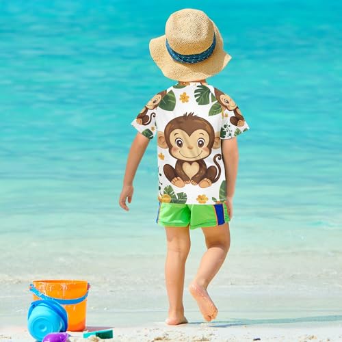 Cute Cartoon Monkey Kids Bathing Suit UV Protection Basketball Tshirt Swimwear Beach Tops 3T 1