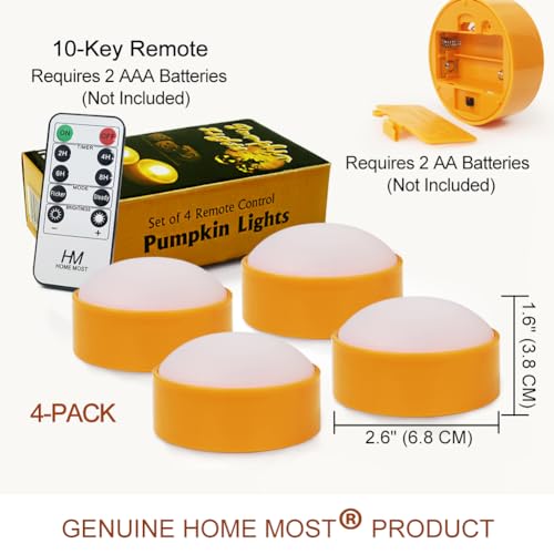 4-Pack Halloween LED Pumpkin Lights Battery Operated - Orange Pumpkin Lights with Timer and Remote Halloween Decor - Jack-O-Lantern Decoration Outdoor 4
