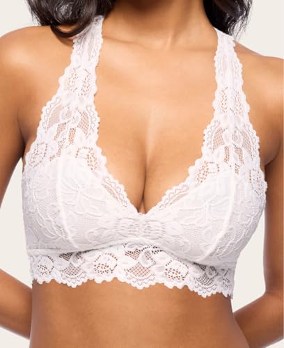 • [PLUNGING NECKLINE] - The Mia lace bralette is designed with racerback straps and a plunging neckline to achieve an hourglass look. Gorgeous on its own or as a peep of lace in your date night outfit, the Mia bralette will complete any look.