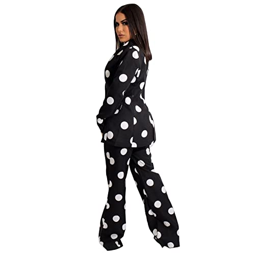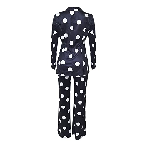 HOT ! Women's Suiting 2 Piece Polka Dot Blazers Business Casual V-Neck Long Sleeve Blazer Jacket and Wide Leg Pants Set