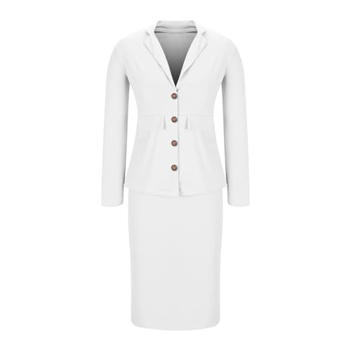 Akklian Business Formal 2 Piece Sets for Women Casual Long Sleeve Lapel Blazer and High Waisted Pencil Skirt Matching Sets 3