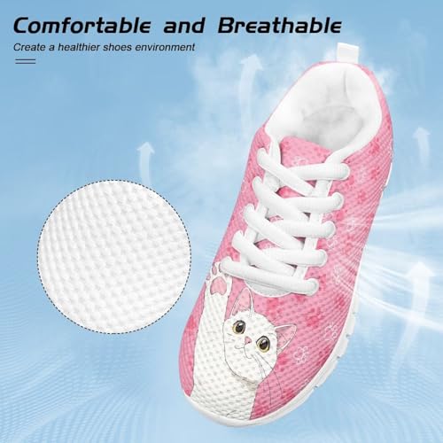 Yzaoxia Cat Shoes for Girls Size 11 Athletic Running Shoes for Kids Barefoot Walking Sneakers Lace Up Sneakers Flat Footwear Slip On Lightweight Trainers for School Gym Pink 4