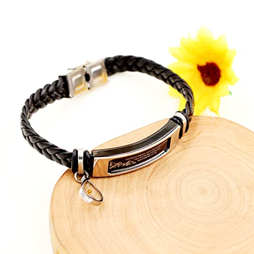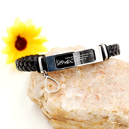 • ♥ Woven Braided Leather Bracelet with Bible Verse Engraved-Faith Small AS A Mustard Seed Can Move Mountains Matthew 19:20.