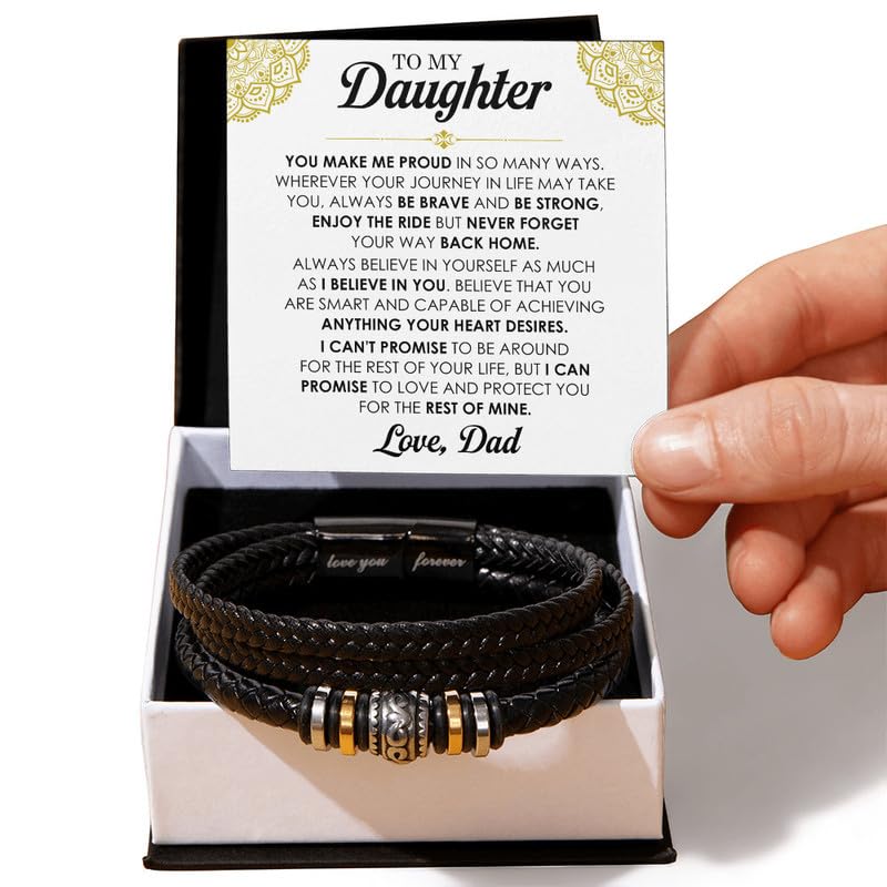 • PERFECT GIFT FOR A PROUD MOMENT - Show your daughter the depth of your pride and love with this exquisite daughter bracelets. A timeless piece, it's the ideal way to celebrate her achievements and remind her of the unbreakable bond between parent and daughters. Perfect as father to daughter gifts, daughter necklaces from mom, or any parent looking to convey their affection.
