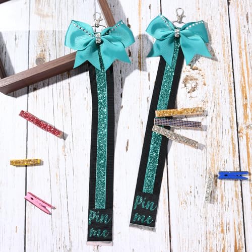 DEEKA 2 PCS Cheer Pin Strap Pin Me Ribbon for Backpack Glitter Cheerleader Keychain Cheer Gifts Bow Holder 7
