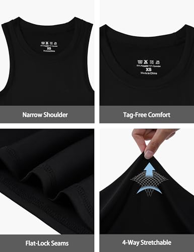 Boys Compression Tank Tops, 3 Pack Athletic Quick Dry Sleeveless Undershirts, Tagless Base Layer Shirt for Youth Kids 3