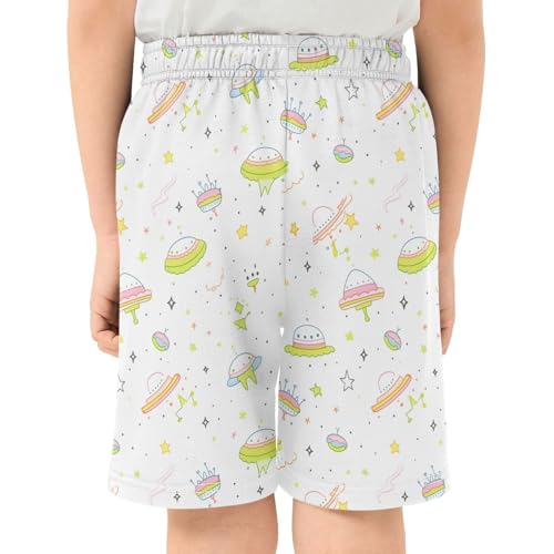 Boys Athletic Shorts with Pockets Cute Spaceship Sketches Running Basketball Shorts for Youth Elastic Waist Size 7-8 6
