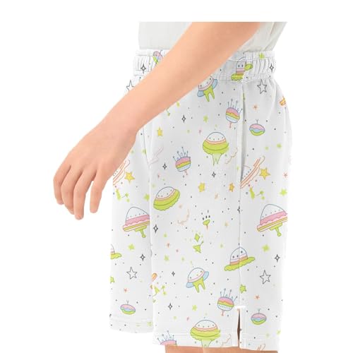 Boys Athletic Shorts with Pockets Cute Spaceship Sketches Running Basketball Shorts for Youth Elastic Waist Size 7-8 3